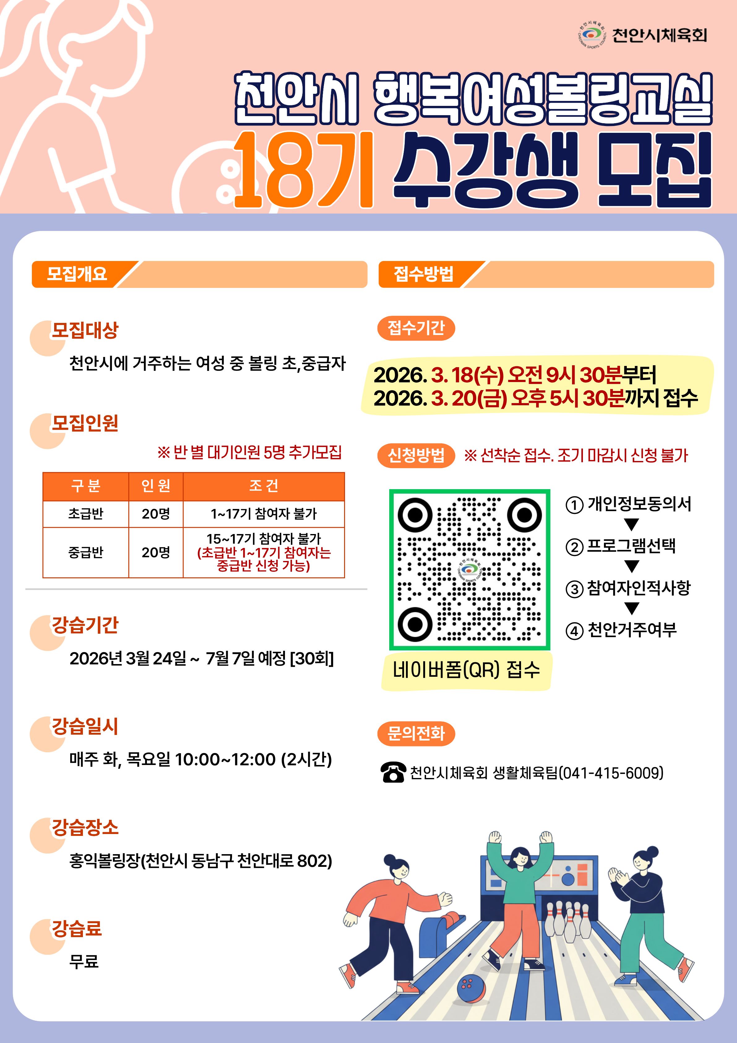 | - | 2026년「천안시 행복여성볼링교실」 18기 수강생 모집안내 | 관리자 | 2026-03-06 |